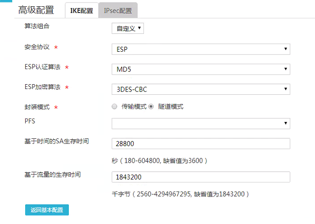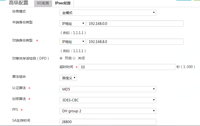 3、检查两端IPSEC VPN的加密算法、认证算法、认证密钥是否一致。