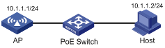 AP接口VLAN 1配置IP地址10.1.1.1/24,Host的IP地址为10.1.1.2/24,AP、Host连接到PoE Switch上,AP通过PoE供电,在Host上Telnet到10.1.1.1/24来管理AP。