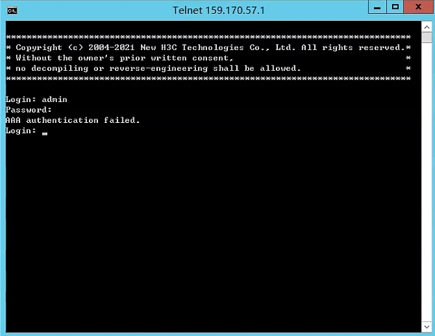 Telnet连接到防火墙地址后输入正确的用户名密码后,提示AAA authentication failed.这个怎样解决