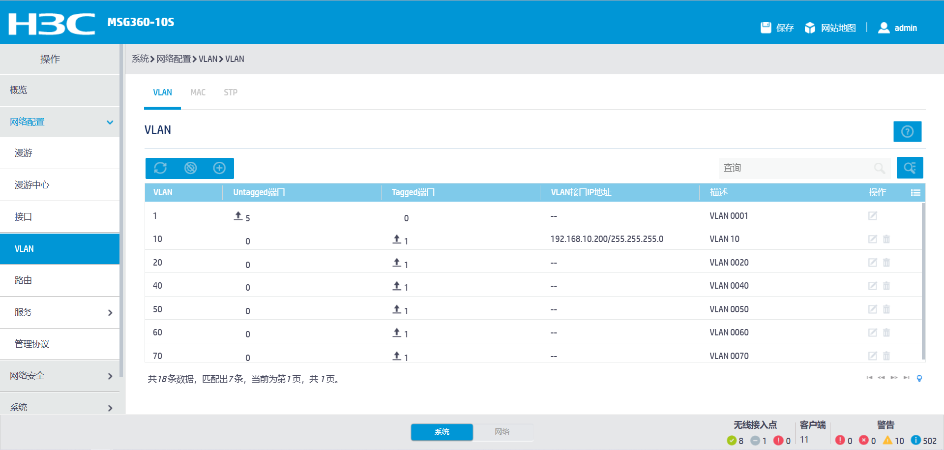vlan10我没有配置option43 因为AC和AP在同网段了,二层就能发现了。 但是连上无线不通路由
