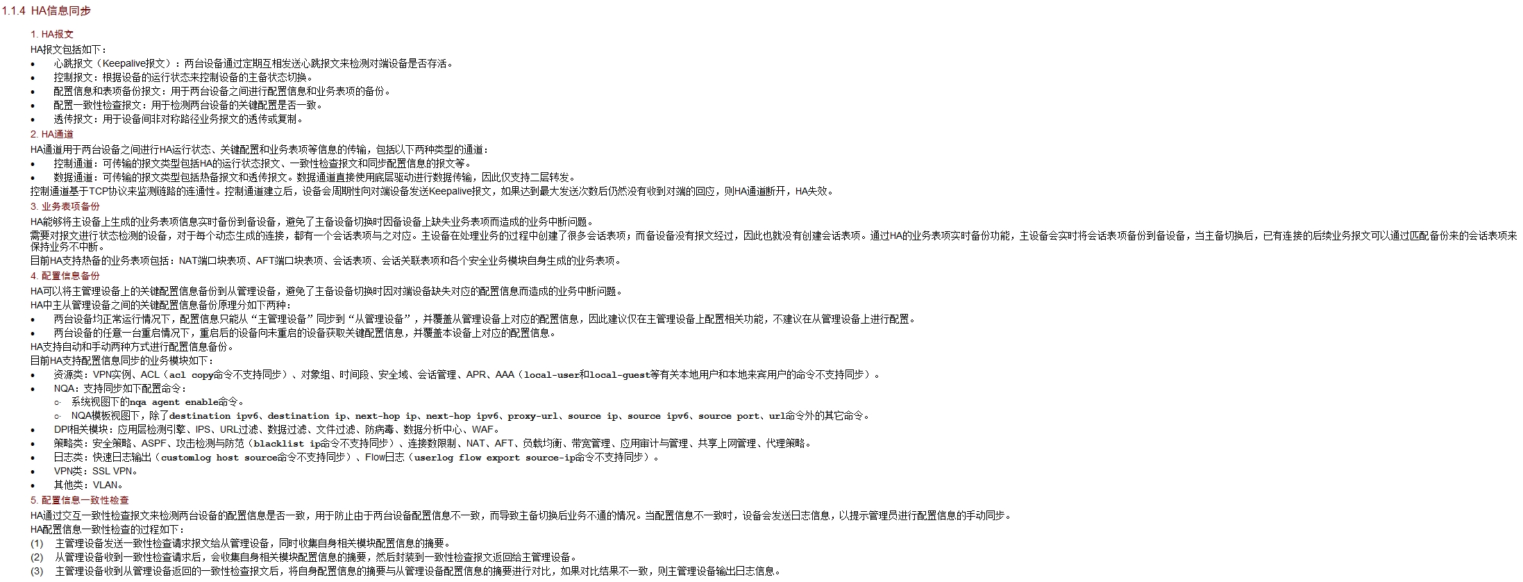 1. 资源类: VPN实例 ACL(不含acl copy命令) 对象组 时间段 安全域 会话管理 APR(地址解析协议) AAA(本地用户相关命令如local-user、local-guest不同步)