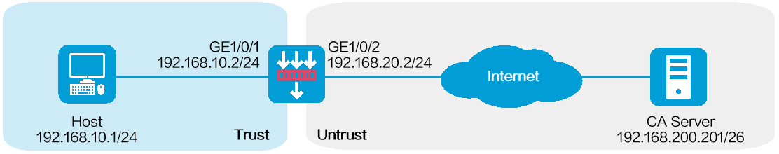 保证设备系统时钟与CA证书服务器的时钟同步,配置IP地址、路由及安全域,保证路由可达。