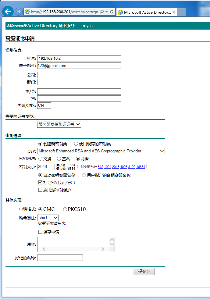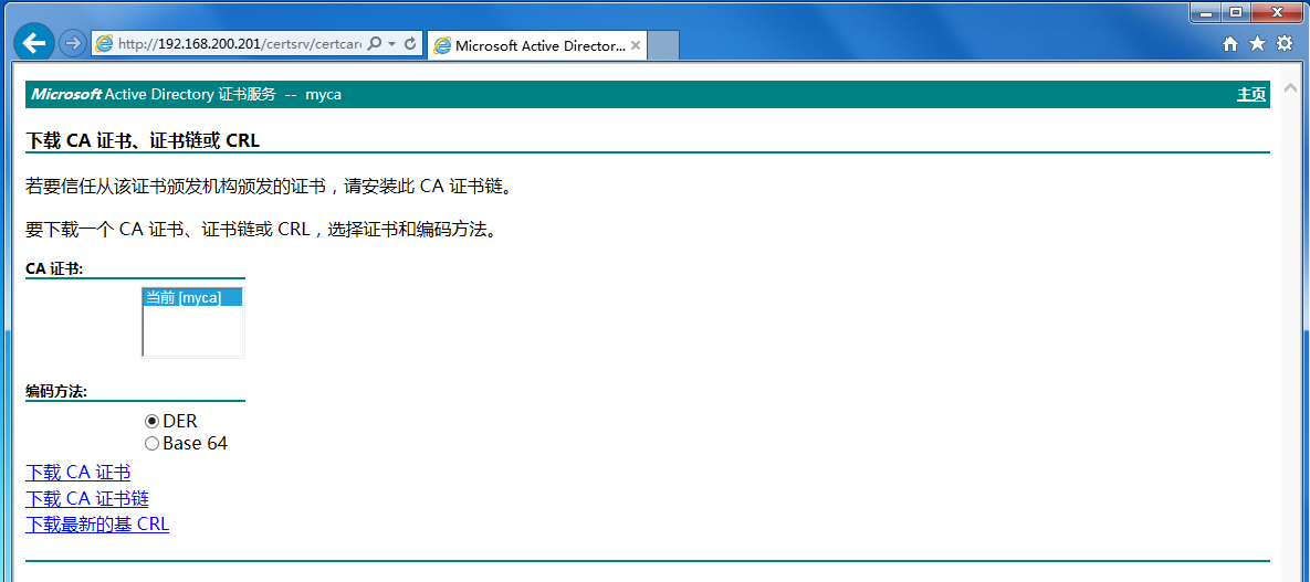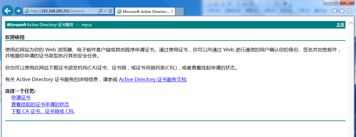 使用IE浏览器,登录http://192.168.200.201/certsrv,账号密码为登录CA证书服务器的账号密码。