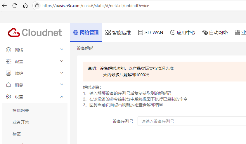 客户H3C MSG360-4-PWR 5端口千兆(5GE-T)多业务网关 想注册到云简平台时提示已经被注册 客户想解绑 这个可以实现吗