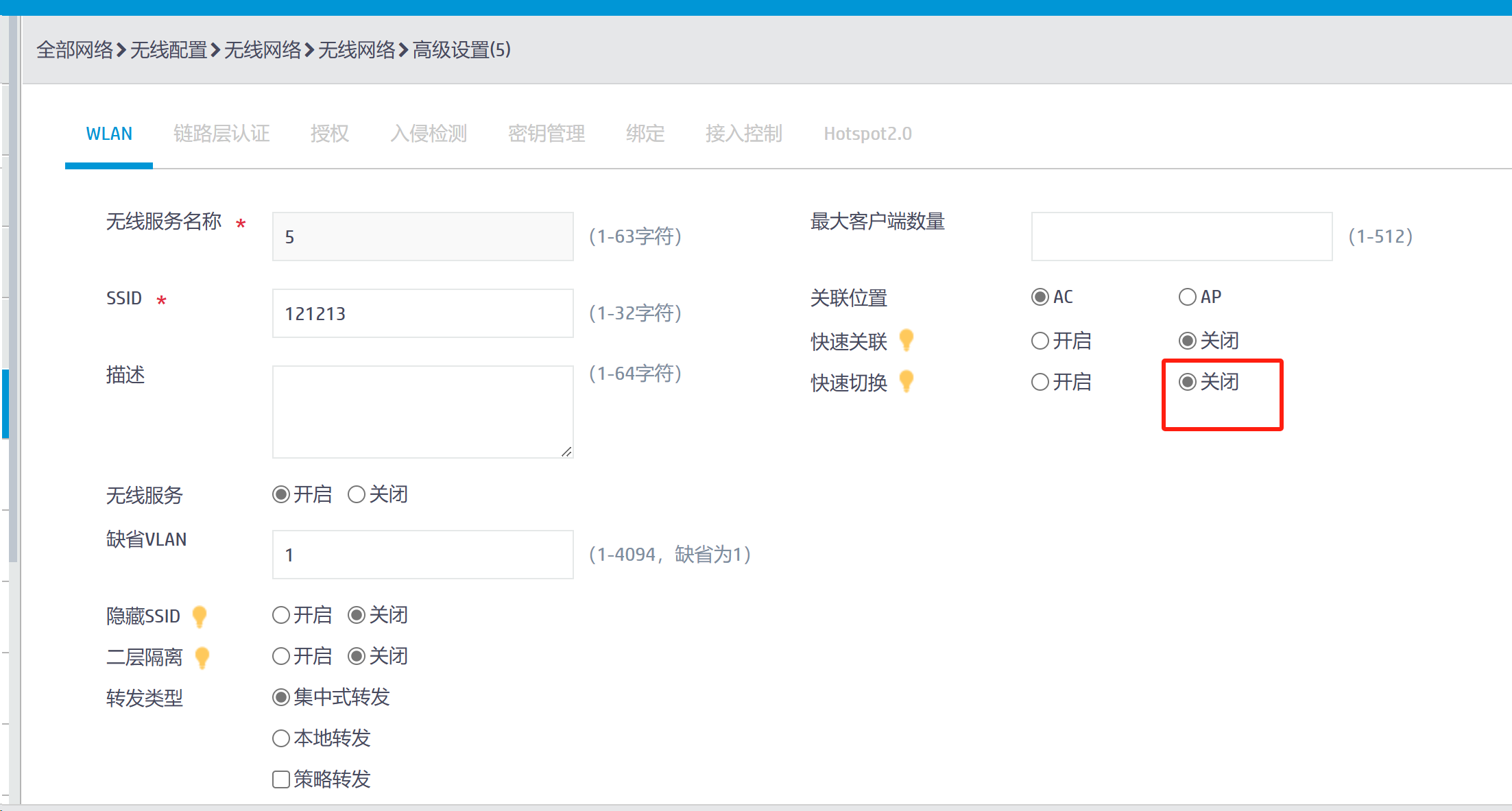 我这边一个无线服务模板不能启用,报错 报错显示 SAE PWE derived methods must be used with WPA3 personal service template.这是啥原因呢,web上显示不匹配bss负载状态