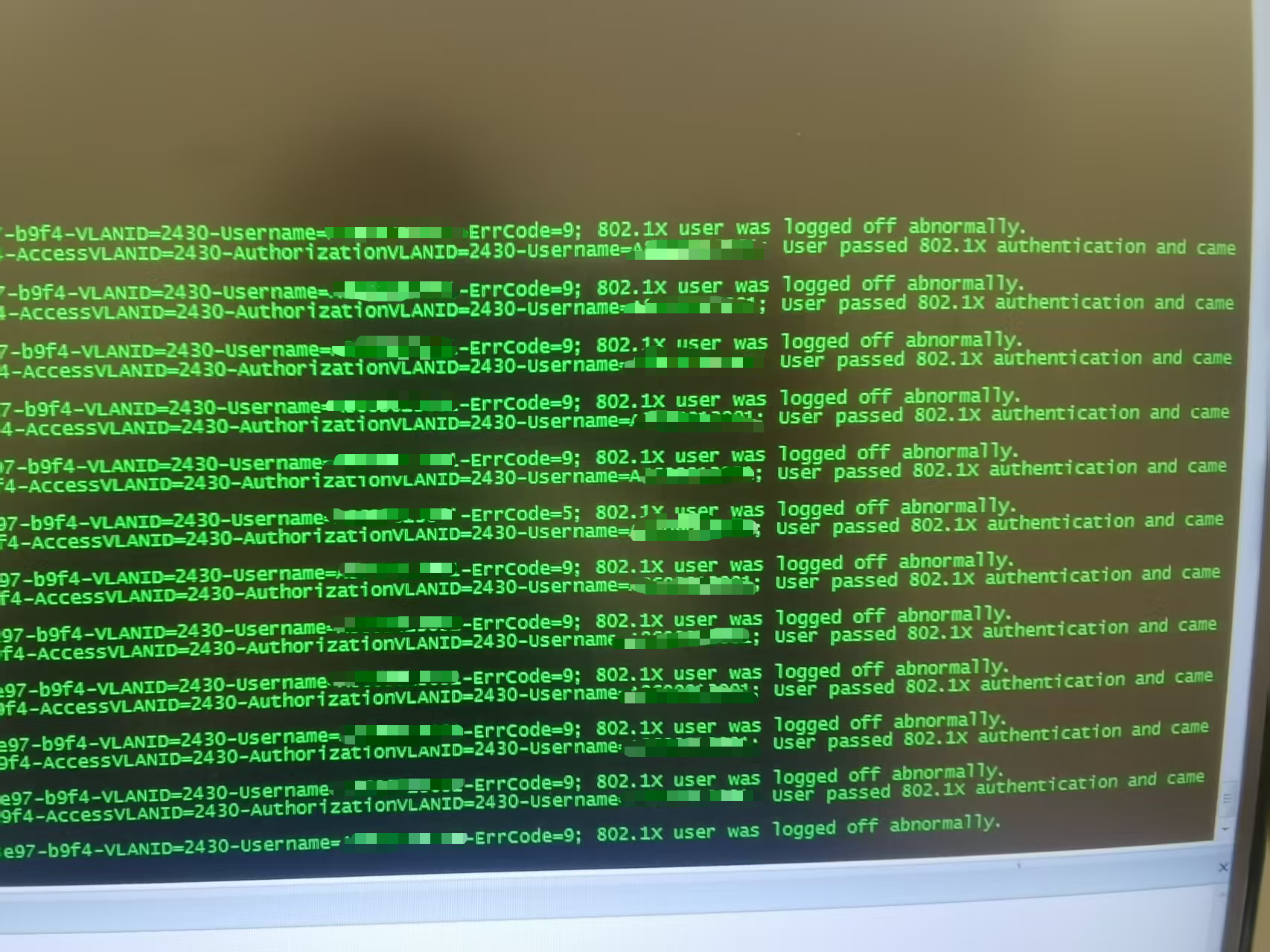 交换机开启了重认证,重认证时间是120秒,电脑是国产机,用户掉线问题,掉线后一般几秒钟后会自动上线,查看日志显示Errcode-9,没查到这个错误码是什么原因。如果重认证时间改为2小时的话,电脑直接无法自动上线,只能重启电脑才能认证成功,有没有大佬能帮忙解答一下。