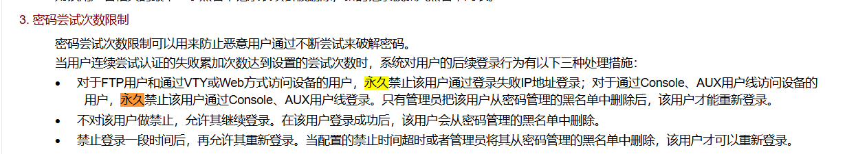 可能是由于用户配置存在残留或用户被锁定导致。建议通过console口进入设备,先彻底清除该用户的配置(包括密码、权限等),并检查是否存在用户类或line class的限制策略。确认无误后,重新创建用户并设置密码。若仍失败,请检查设备用户管理机制或是否存在AAA配置冲突。