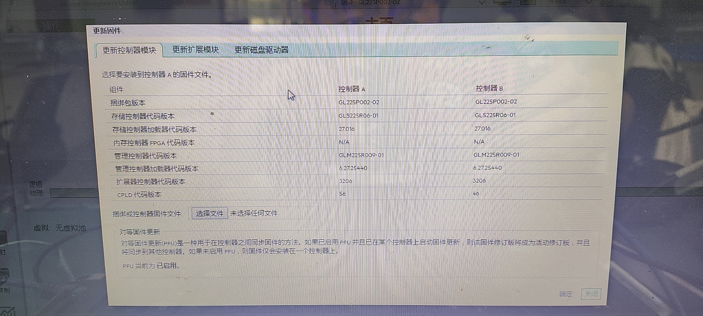 根据第一张截图,2个控制器的固件已经升级为GL225P022-02,已经升级成功了。