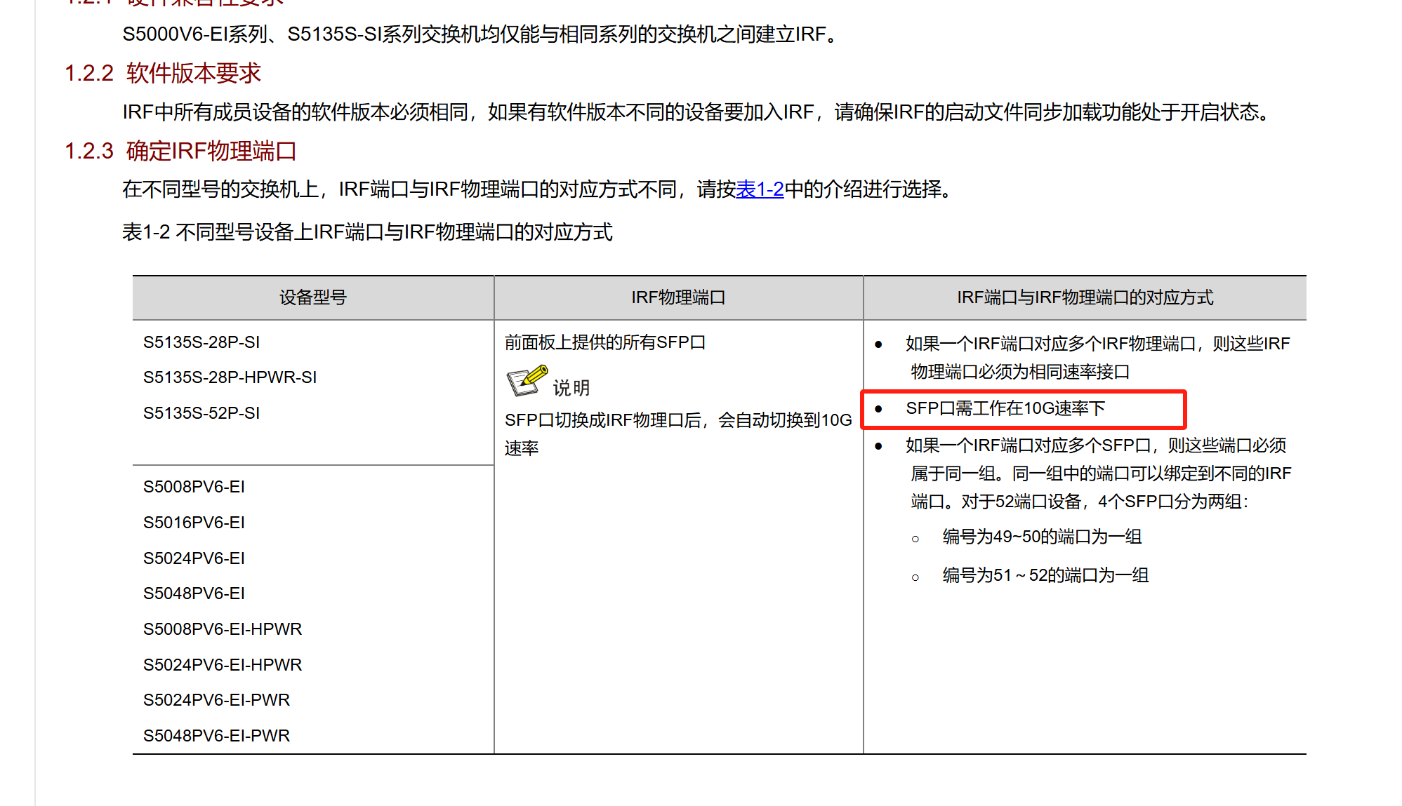 • 堆叠介质要求:该型号交换机的堆叠功能依赖万兆光口实现,需使用万兆 SFP + 光模块(如 SFP-XG-SX-MM850、SFP-XG-LX-SM1310 等)搭配光纤,或专用的万兆堆叠线缆(需确认设备支持的线缆类型)。