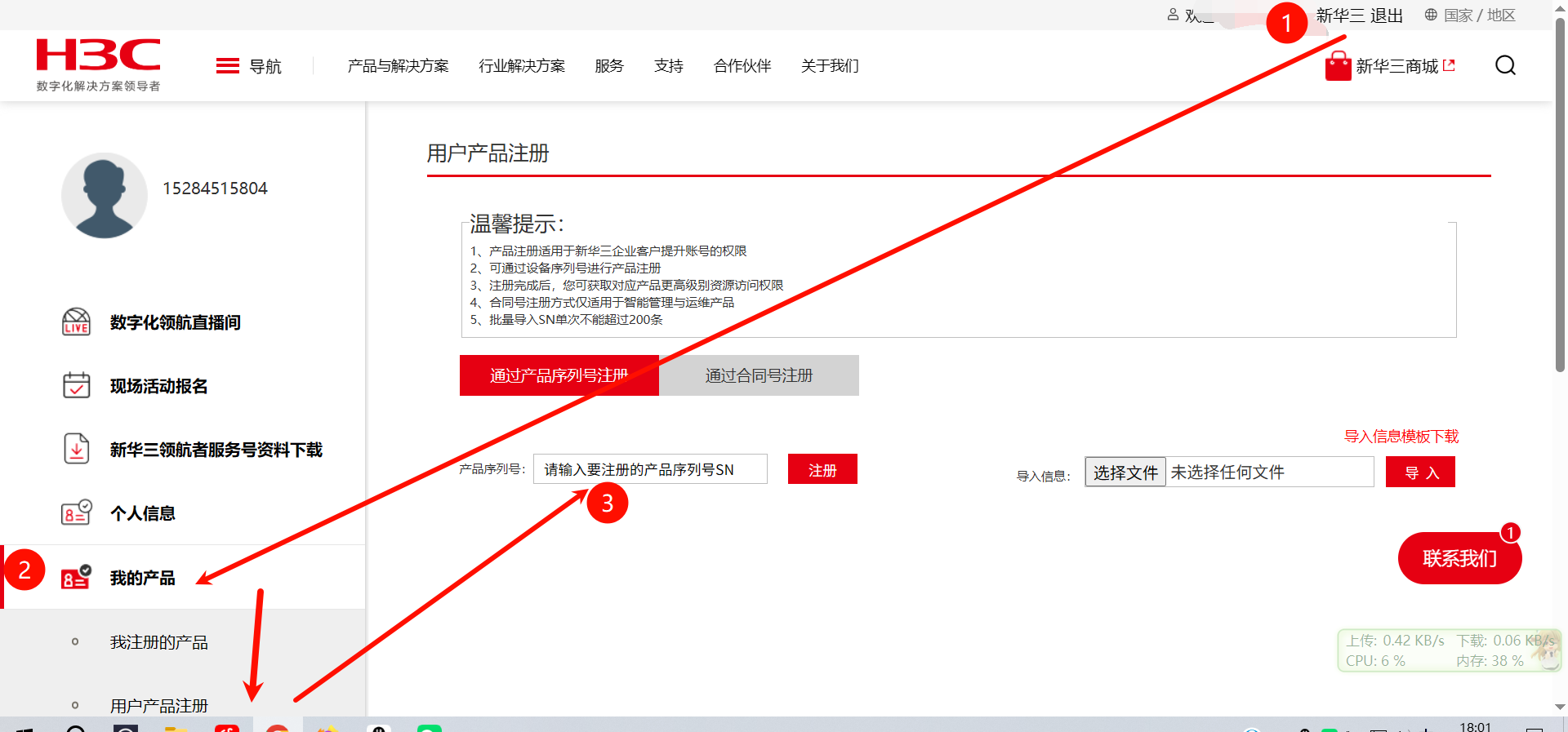 亲~检测到您登陆的账号未在http://hclhub.h3c.com进行注册