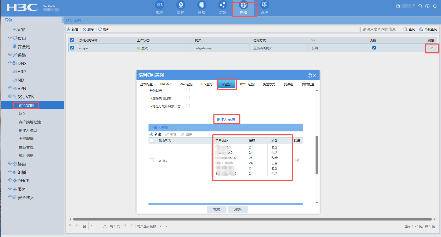 里面可以添加允许的地址段,参考配置V7防火墙调用设备默认证书的IP接入本地SSL VPN认证典型配置 - 知了社区