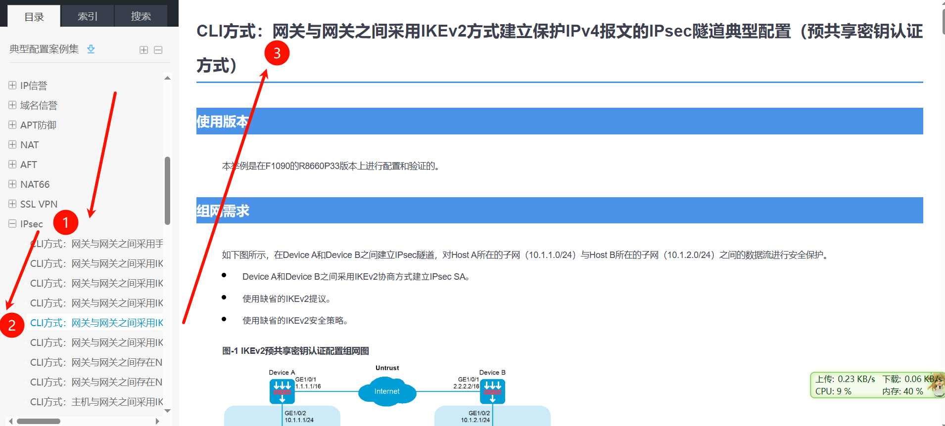 CLI方式:网关与网关之间采用IKEv2方式建立保护IPv4报文的IPsec隧道典型配置(预共享密钥认证方式)