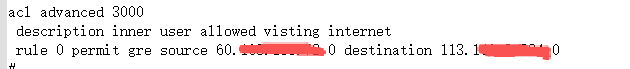 rule permit ip source [本地公网IP] 0 destination [对端公网IP] 0 protocol gre