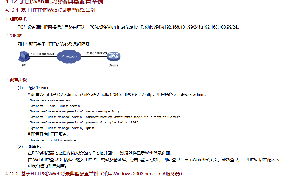 [H3C-luser-manage-admin] service-type http https //服务类型为http跟https