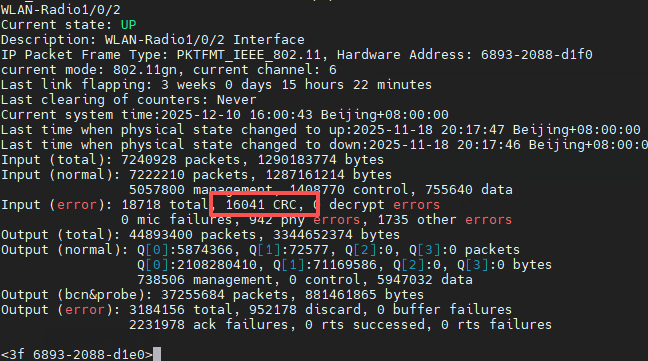 无线ap WLAN-Radio 接口CRC包一直增加是什么原因