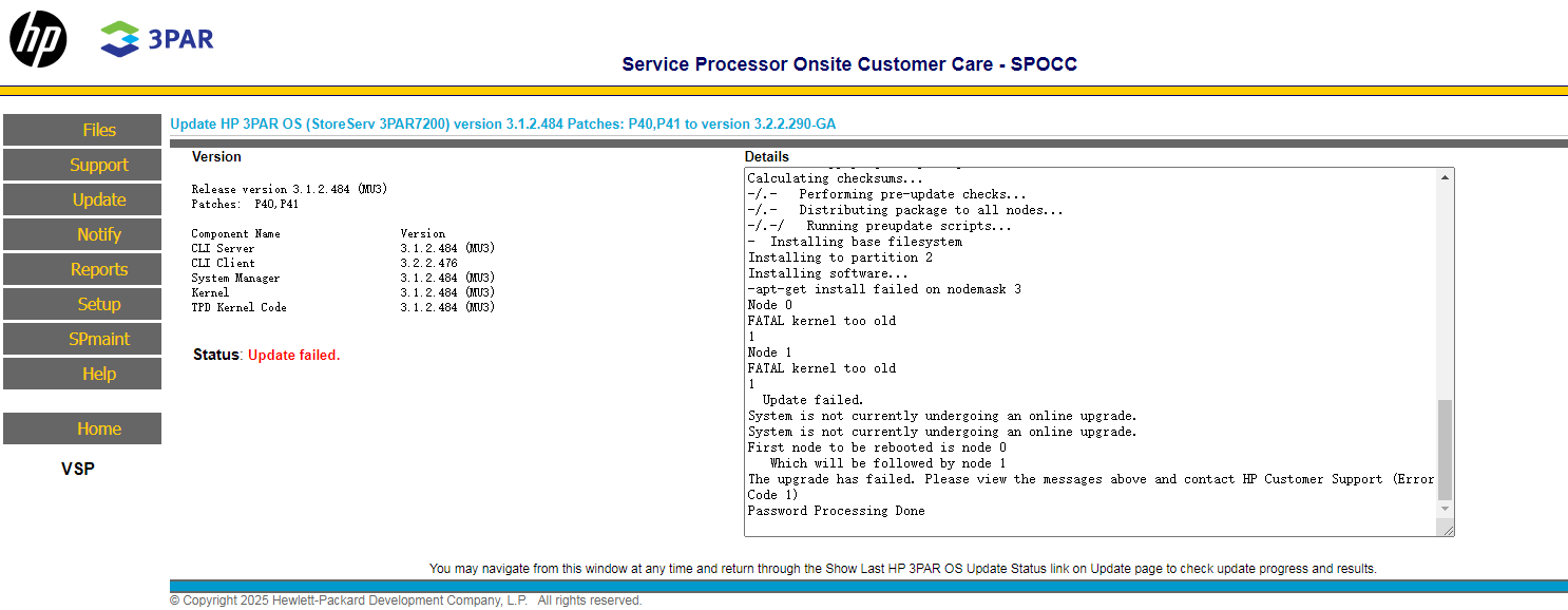 请联系400售后报单升级 3PAR OS,如果设备过保了,要先续保。