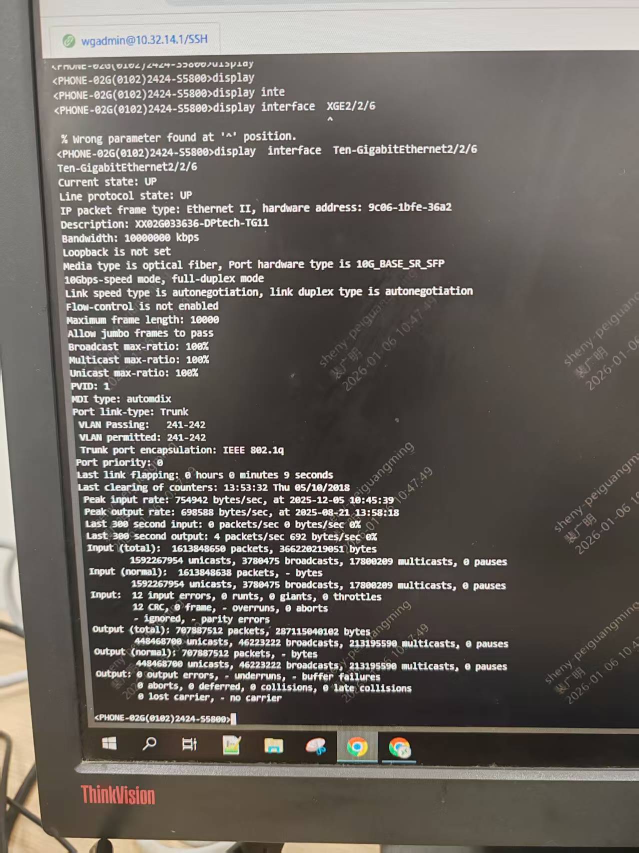 入方向错包在增长,那么就是中间线路或者对面端口存在故障需要更换排查下,一般是物理层面的