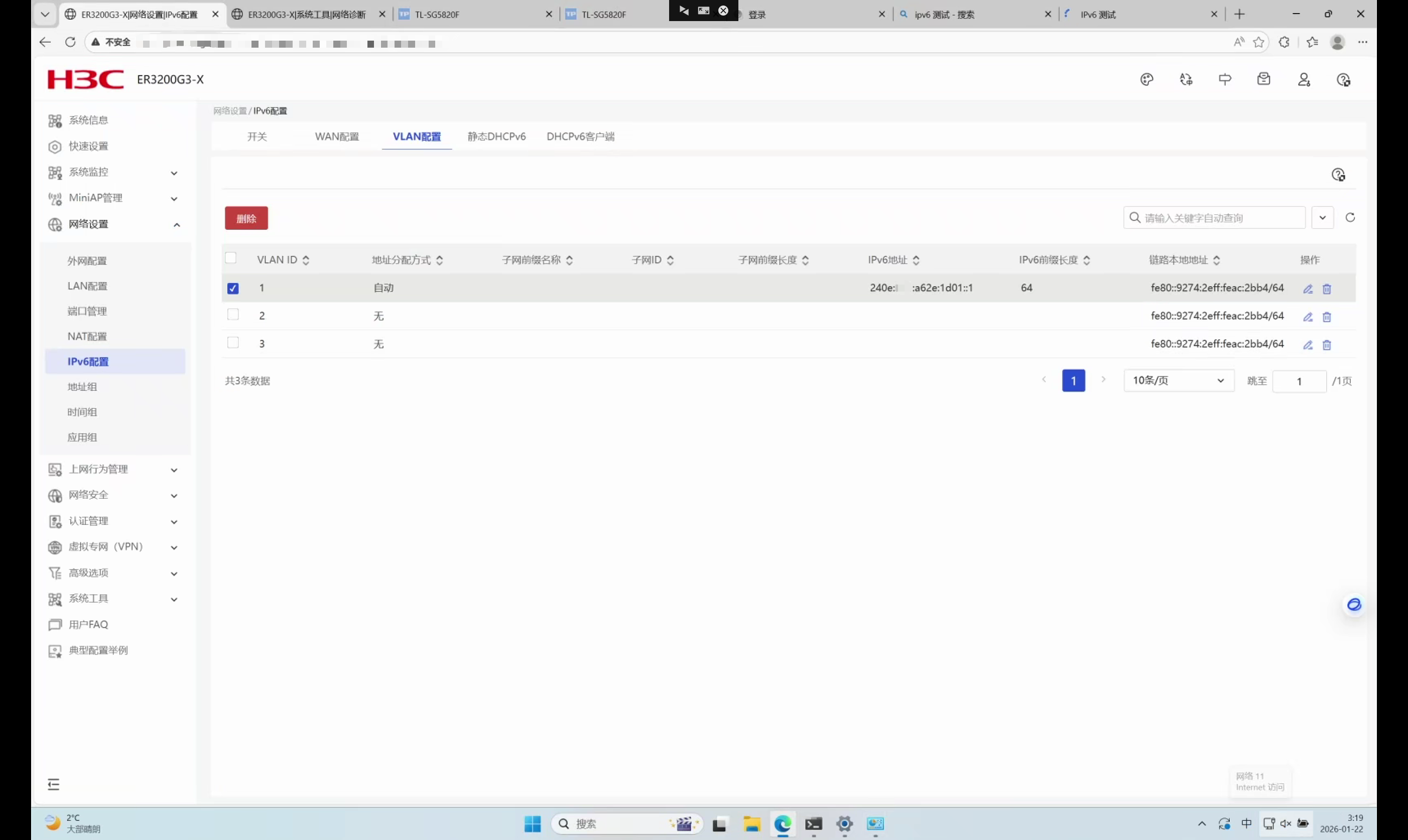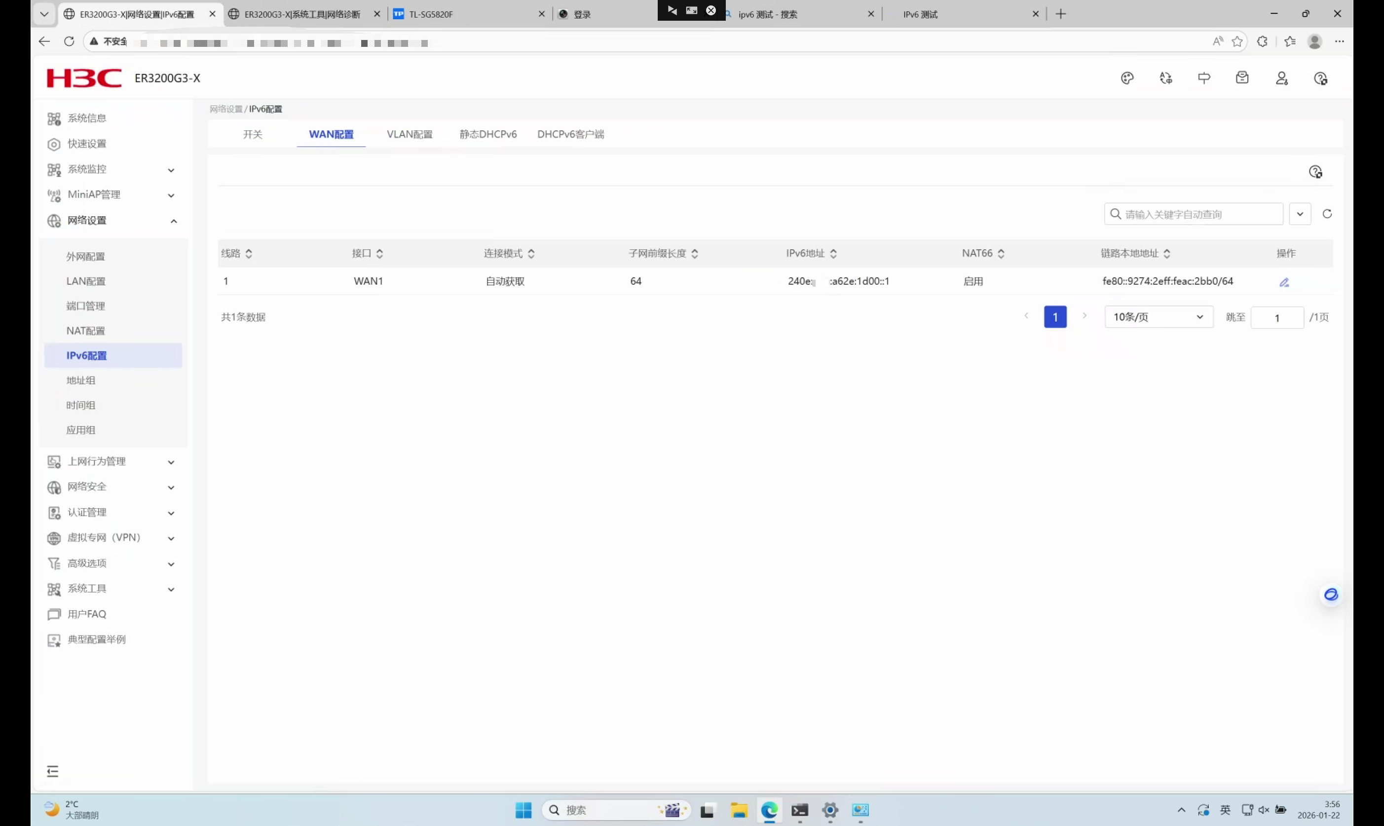 ER3200G3-X路由器开启IPv6后,电脑能获取地址但无法连通网络,可能原因如下:
