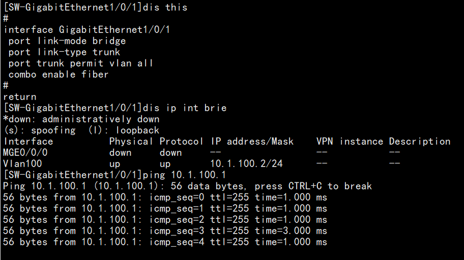 通过这个接口vlan 1000是通信的 但是就是296不通 接口是up的 光口收发光正常
