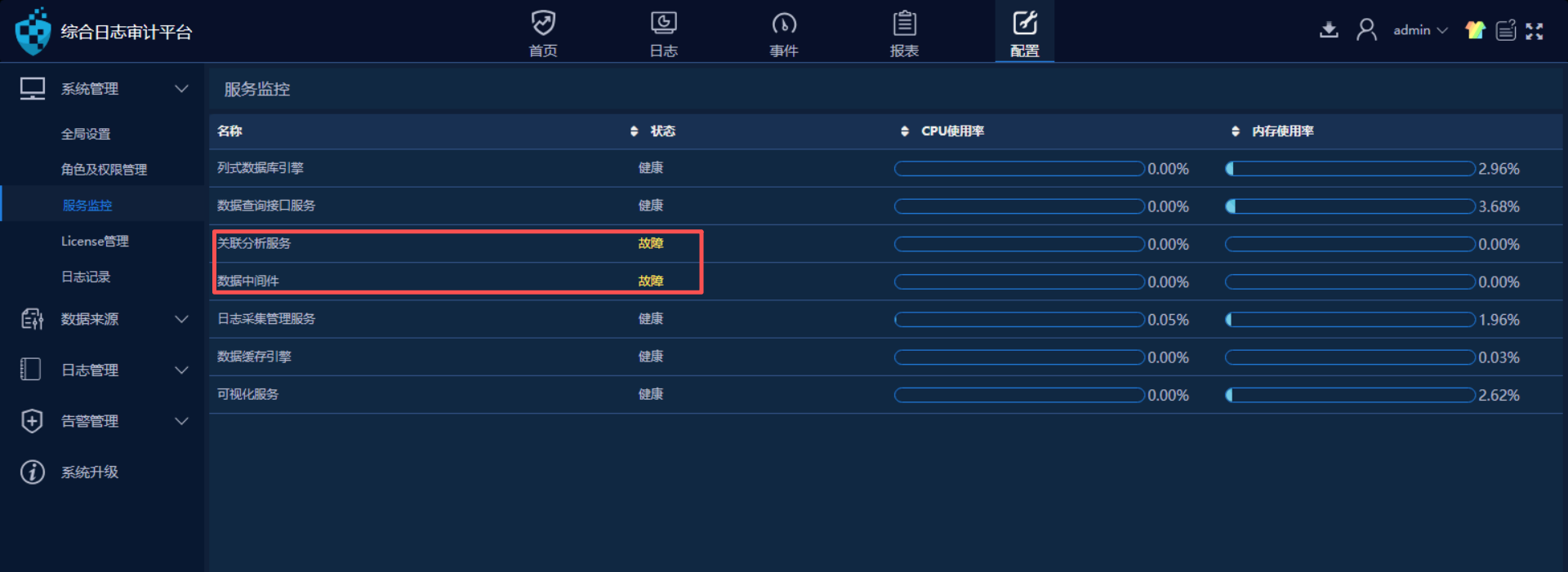 1. **重启系统服务**:登录设备后台,尝试重启日志采集相关服务(如 logcollect、dataengine 等),恢复临时异常。