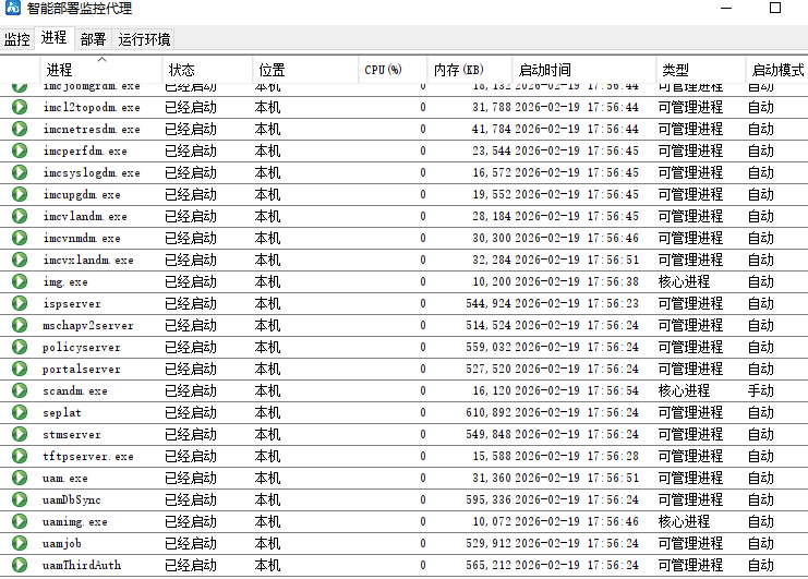升级完iMC PLAT 7.3 (E0710H10) 后,智能部署监控代理里面没有jserver进程了?导致8080无法打开单独使用iMC\client\bin\startup.bat运行后有8080进程,但是无法打开http://ip:8080/portal和http://ip:8080/imc页面。