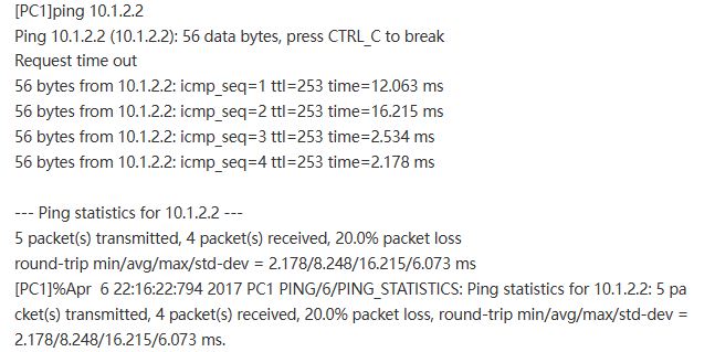 ip route-static 10.1.2.0 24 GigabitEthernet0/0 2.2.2.2