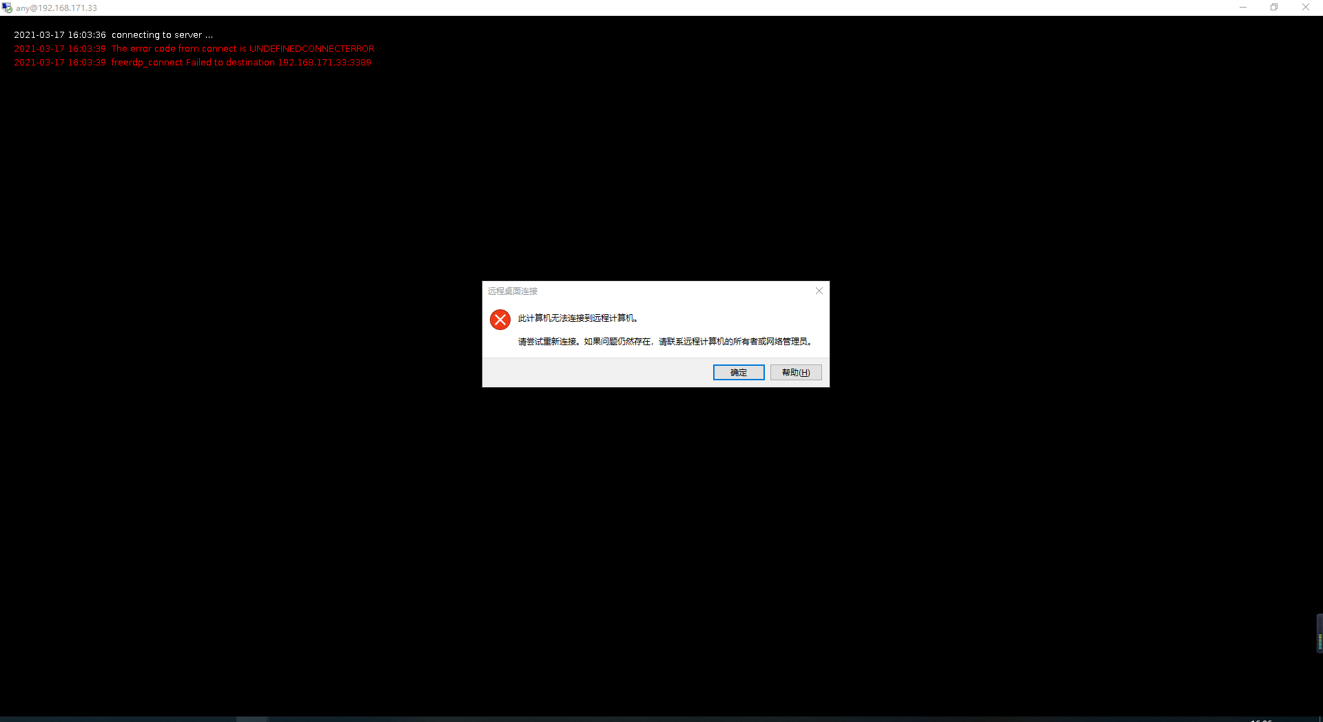“freerdp_connect Failed to destination xx.xx.xx.xx