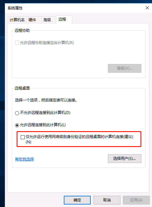 检查服务器远程桌面配置发现,服务器端勾选了“仅允许使用网络级别身份验证的远程桌面的计算机连接(建议)”这个选项,把这个勾选去掉,发现通过堡垒机可以成功登陆到Windows服务器。