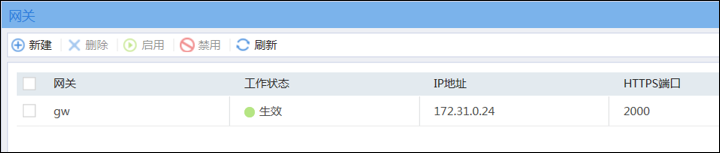 通过Web导航栏“网络>SSL VPN>网关”可以查看网关状态,检查网关的IP地址和端口号是否正确,网关工作状态是否为生效,如图 2所示,网关状态正常。