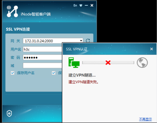 如果TCP客户端无法正常启动,可以参考《Comware V7 SSLVPN IP廋客户端接入方式使用指导》。