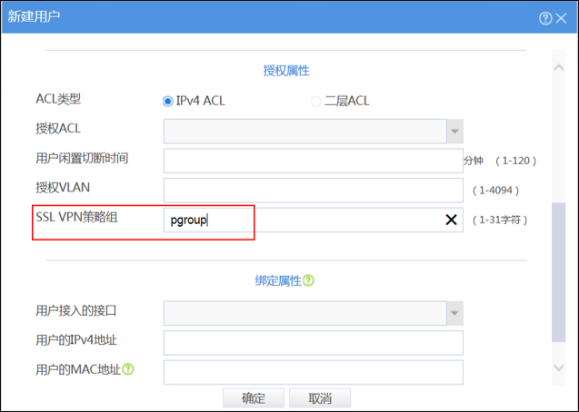 如果使用用户组给SSL VPN用户分类,每个用户组的用户使用相同的资源,可以在用户组的授权属性中关联SSL VPN策略组,并将用户加入对应授权用户组。