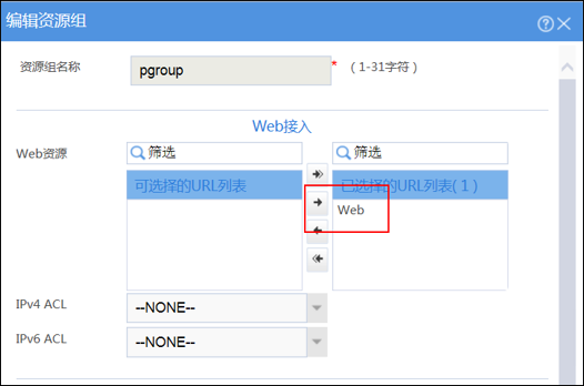 例如:配置完成URL列表Web,在资源组pgroup下引用。