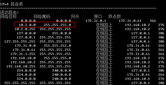 用户IP接入成功后,可以在PC上打印网卡地址信息和路由表信息。
