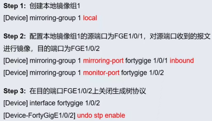 1.目的端口不能使能生成树协议,否则会影响镜像功能的正常使用;