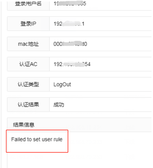 5、debug发送下线报文的原因是Failed to set user rule,一般是acl资源不足或者是AAA服务器下发而设备不能正常执行的授权规则导致的acl资源我看过是足够的,怀疑是aaa那边下发了设备无法执行的授权规则。但是后续将domain域里的授权改为none了之后故障依旧。