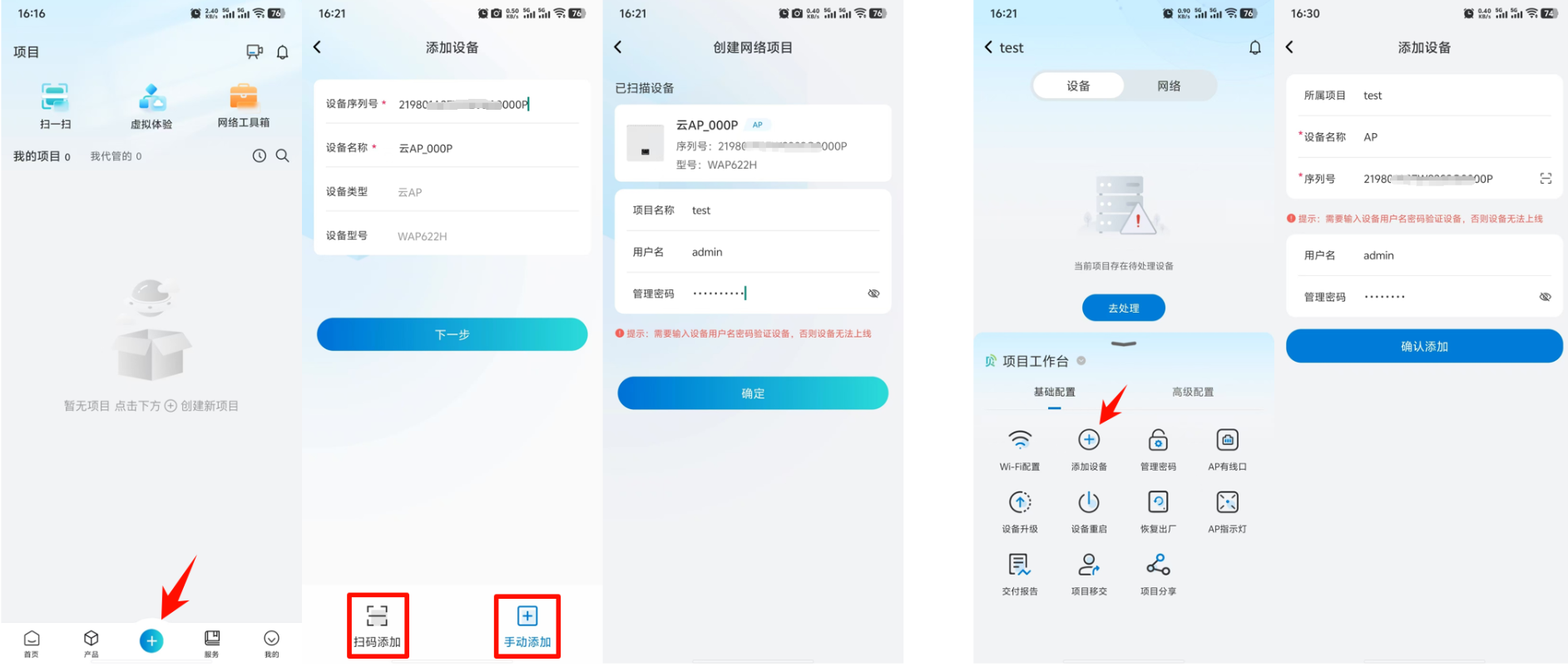 方式二:小贝APP——创建新项目并添加设备,如果项目已存在,在项目中添加设备即可;