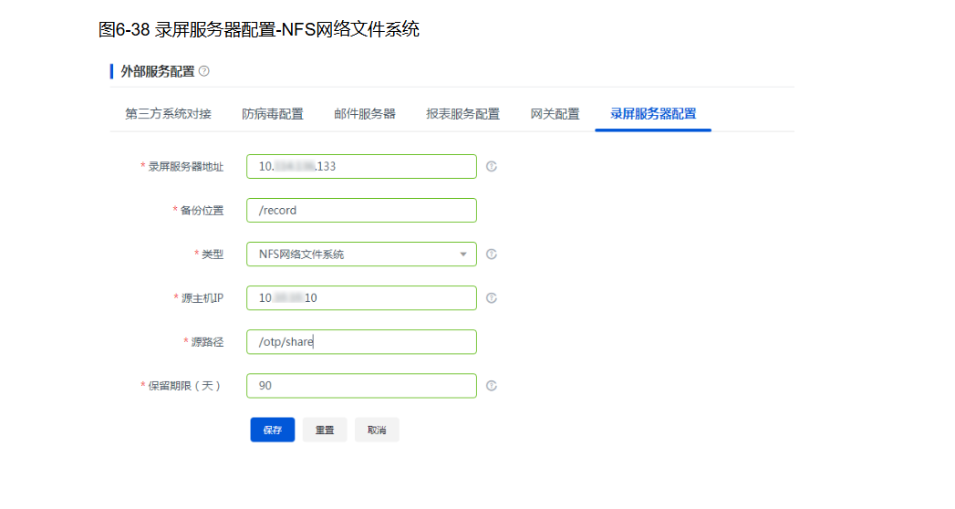 3. 不能,外部只支持nfs存储,这个存储是录屏服务器直接去挂载,不是管理平台所在的服务器。