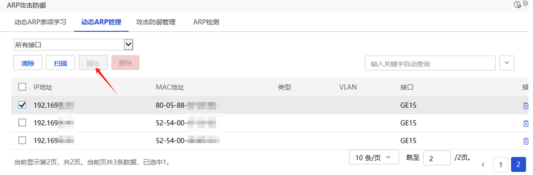 1、经测试,接口关闭用户流量排行后即可进行ARP固化
