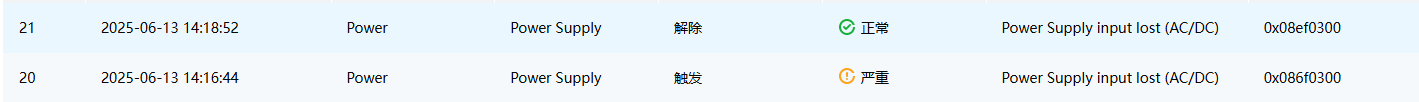 在自研G3、G5服务器HDM上人为制造电源告警;