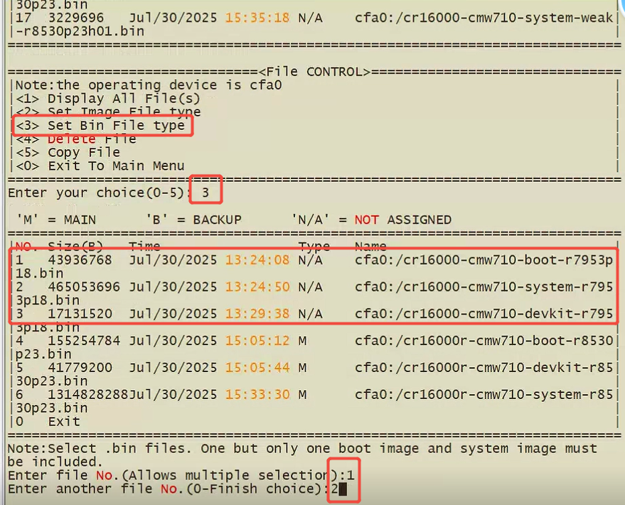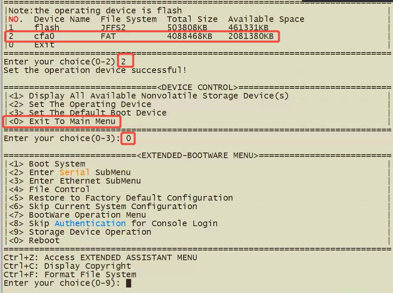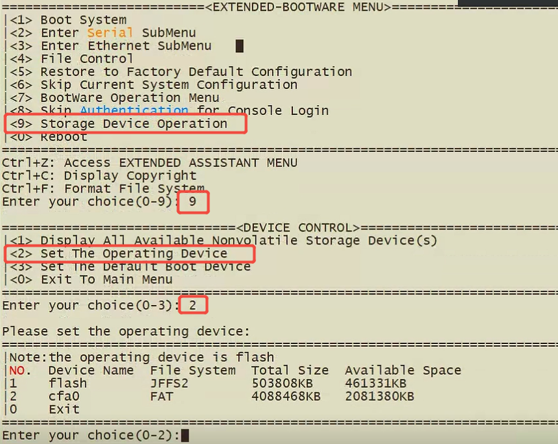 1、在bootware内找到cfa0,先指定之前的版本文件让系统正常启动,再命令行操作升级: