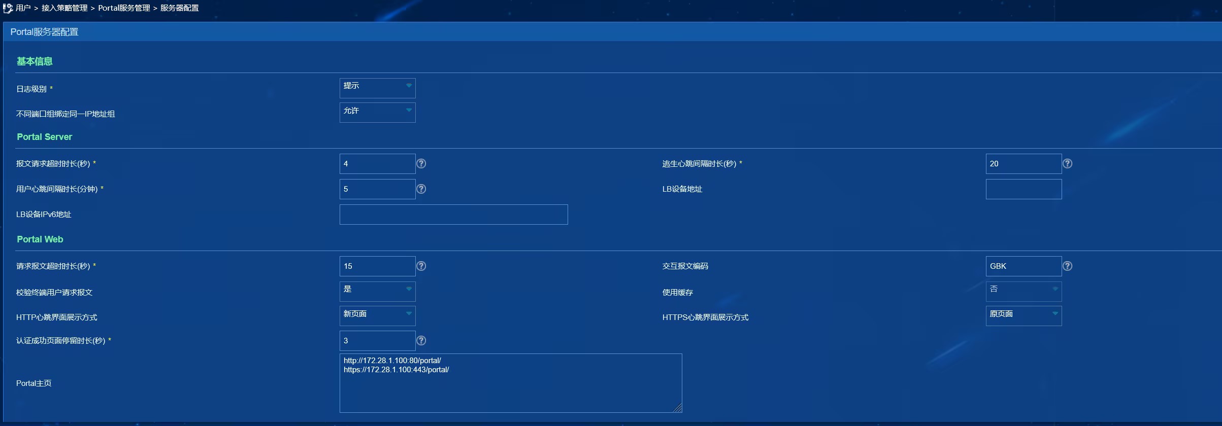 1、接口下配置portal,逃生可开启web-server或server