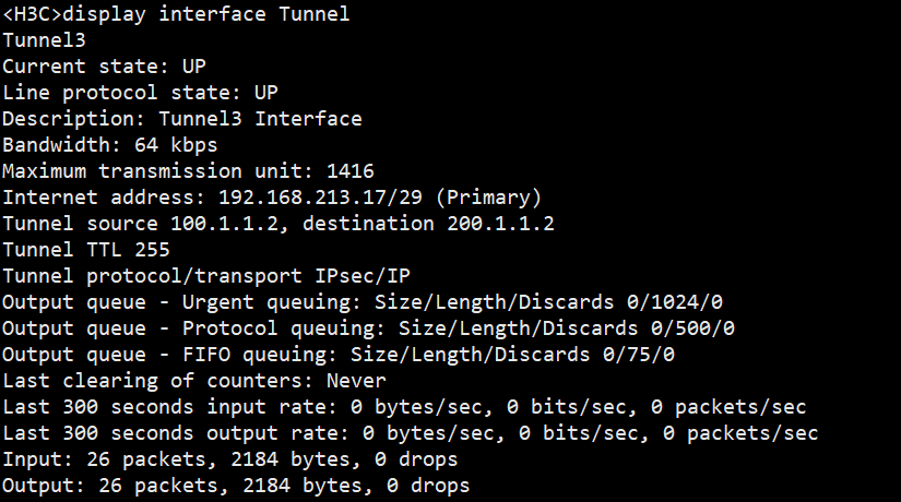 因为总部这边是有vpn实例,所以在对应的ikev2的policy地方调用vrf否则会导致policy查询不到 tunnel口down