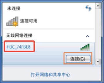 2)配置完成之后通过无线终端(手机或者带有无线网卡的电脑等),搜索Wi-Fi名称为“H3C_XXXXXX”的无线网络(无线信号默认没有加密),进行连接即可,XXXXXX为设备MAC地址后六位。