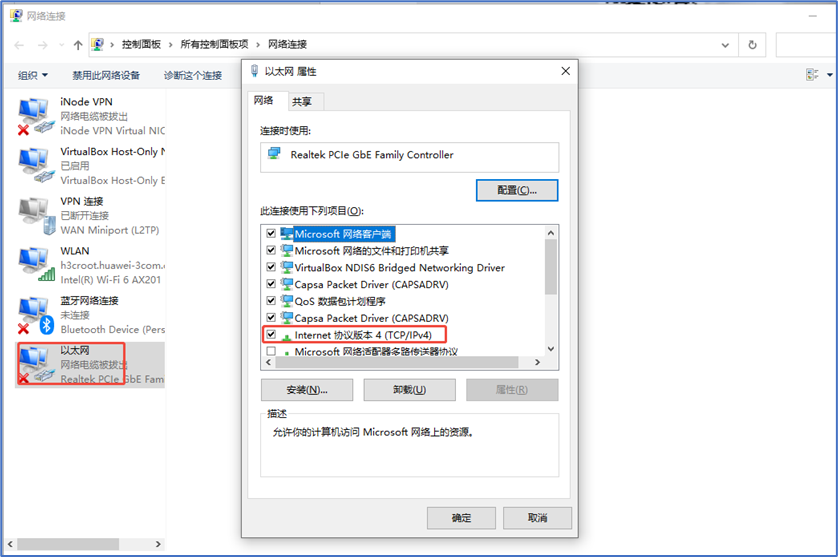 双击以太网卡,再双击Internet协议版本4(TCP/IPv4)