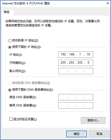 1)电脑与设备路由可达,然后设置电脑的IP地址,以windows电脑为例