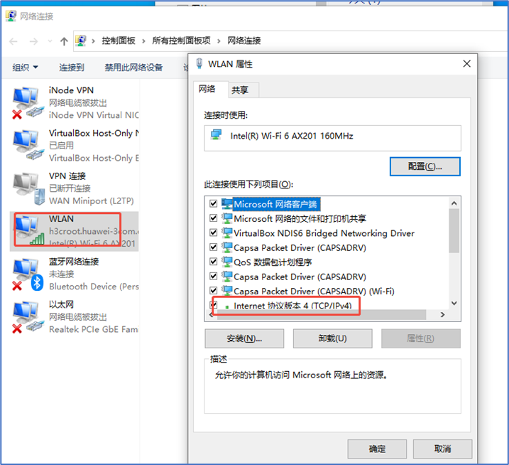 右击无线网卡点击属性,再双击Internet协议版本4(TCP/IPv4)