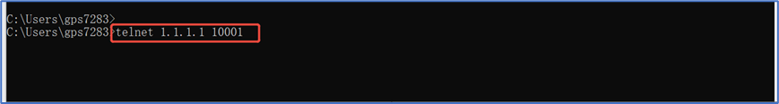 在cmd界面使用telnet 1.1.1.1 10001测试端口映射是否成功