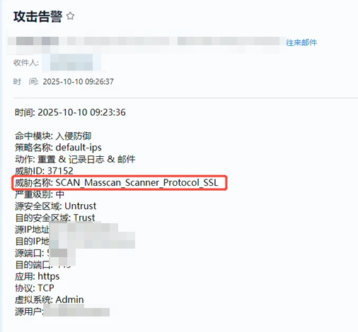 现网防火墙配置威胁日志邮件外发,客户收到的邮件中发现威胁名称是英文的,但是设备上看日志是中文的,如下所示: