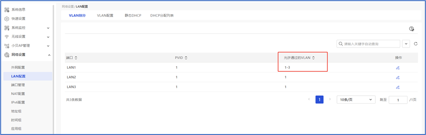 port trunk permit vlan 1 to 3 //配置接口允许管理业务vlan通过