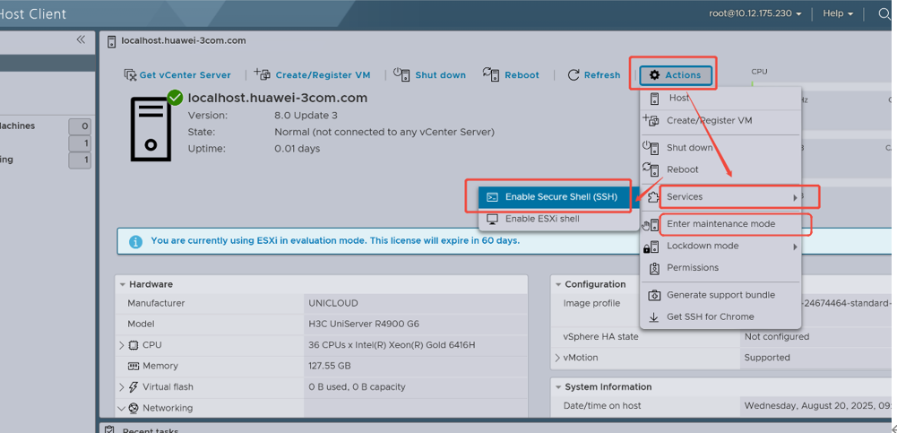 1.查看ESXI当前版本为VMware ESXi 8.0 Update 3e